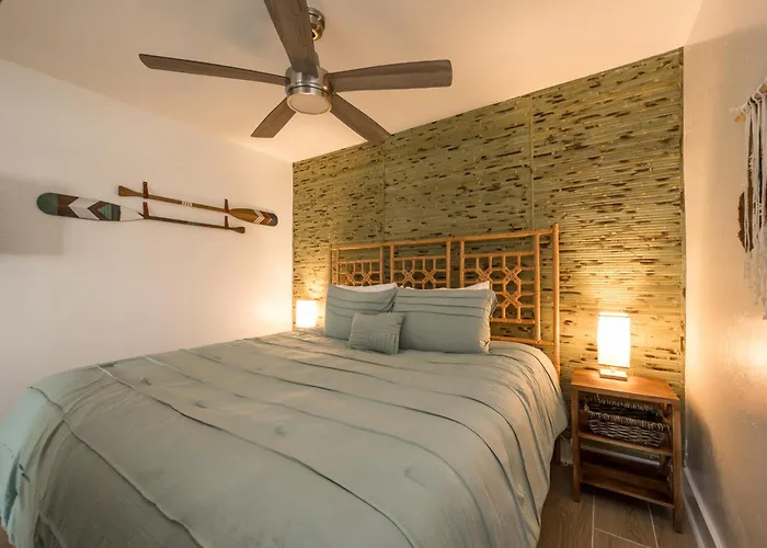 The charming Ibis Bay Resort in Key West offers a variety of comfortable and beautifully designed rooms. The cottage-like rooms of the 3-star Ibis Bay Resort, with their high-pitched tin roofs, create a sense of privacy and tropical feel against the backdrop of Key West's salt ponds. Each room at The Ibis Bay Resort Key West is thoughtfully decorated, with pastel-colored stripes or polka-dots painted onto the doors, adding a touch of whimsy. All guestrooms at the 3-star Ibis Bay Resort Key West boast amenities like free WiFi, air conditioning, and premium bedding. For a truly unique experience, guests can choose a waterfront room with a back patio that includes a private hammock, table, and beach chairs.